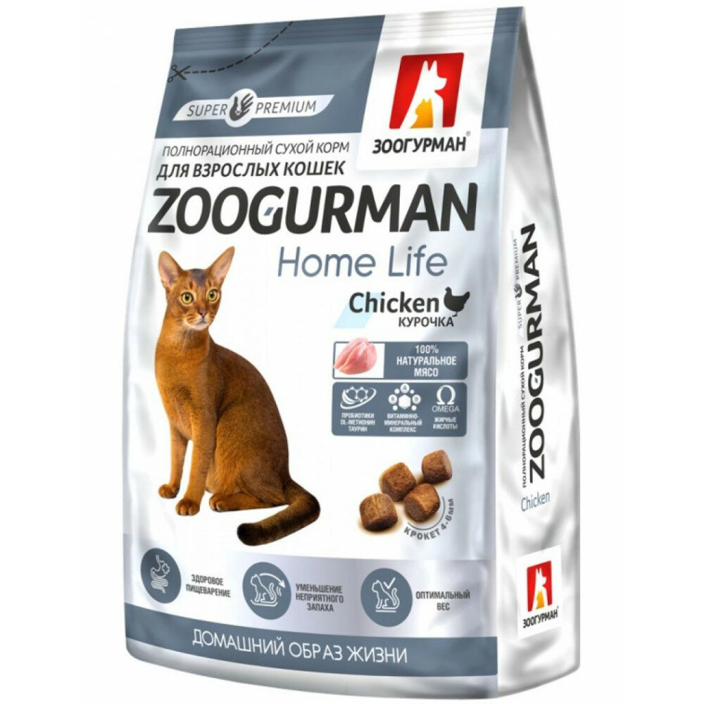 Сухой корм zoogurman для кошек живущих дома курица home life 350г 5916