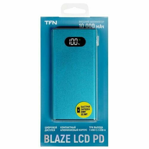 Внешний аккумулятор TFN Blaze LCD PD 22.5W 10000mAh (голубой)