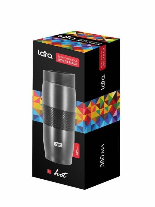 Термокружка LARA Black 380мл, двойные стенки, вакуум, сталь/силикон LR04-24