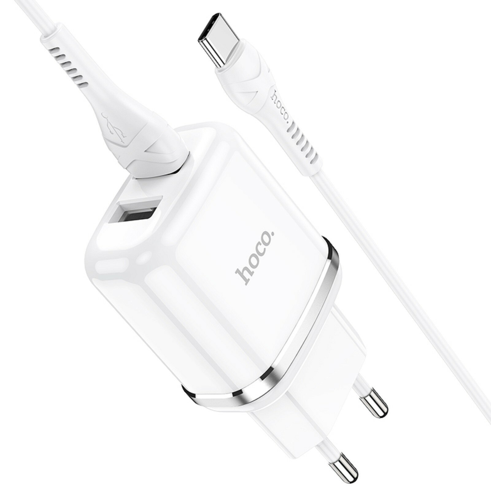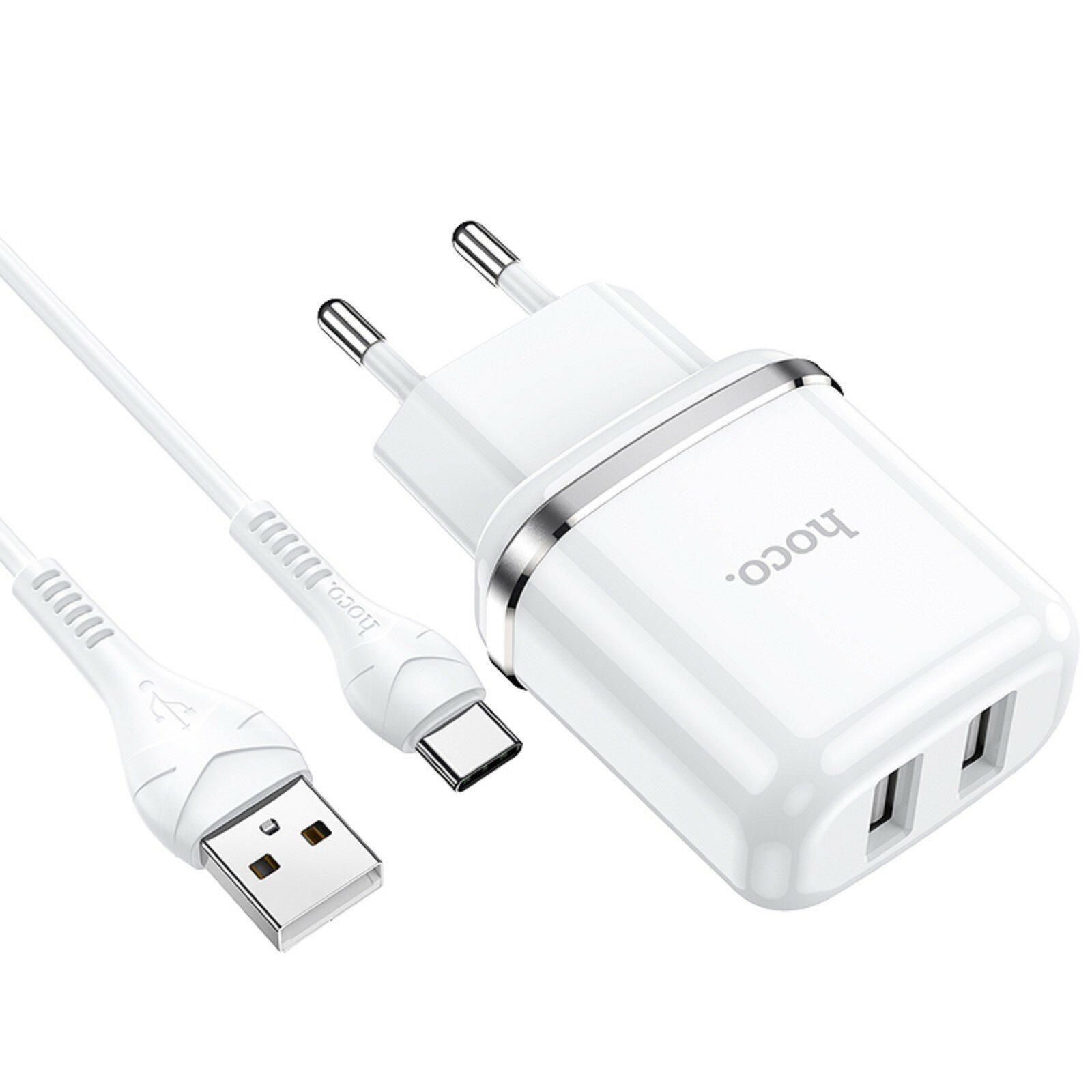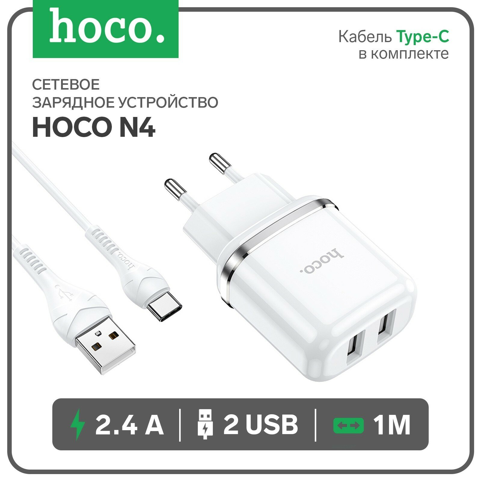 Сетевое зарядное устройство Hoco N4, 2 USB - 2.4 А, кабель Type-C 1 м, белый