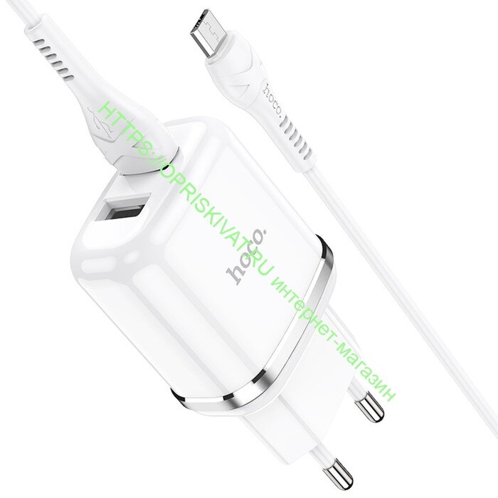 Сетевое зарядное устройство N4, 2 USB - 2.4 А, кабель microUSB 1 м, белый
