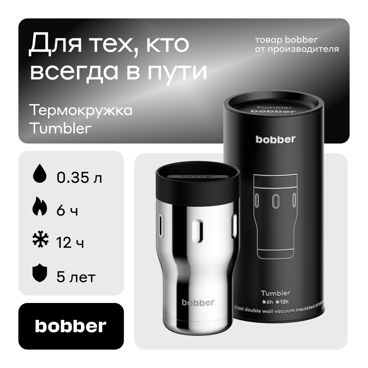 СохранитьBobber/Термокружка для чая и кофе Tumbler 350 мл/Glossy/держит тепло до 6 часов интересное:
