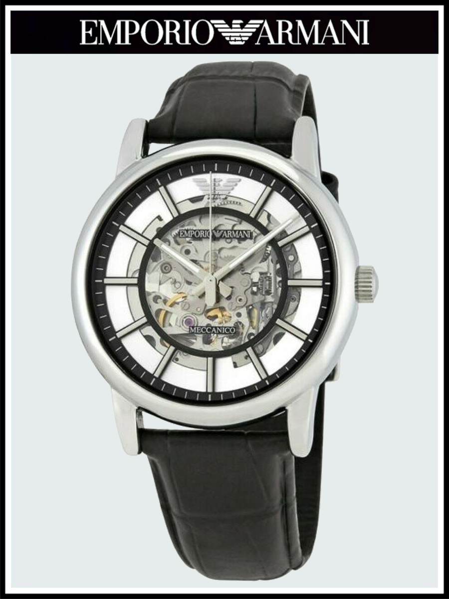 Наручные часы EMPORIO ARMANI AR1981 механические, автоподзавод, скелетон, водонепроницаемые, подсветка стрелок