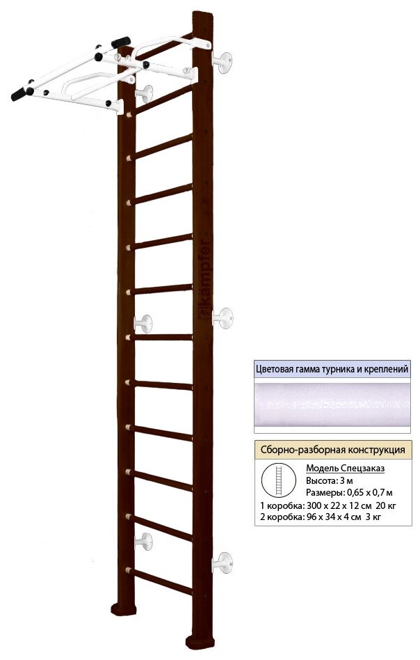 Домашний спортивный комплекс Kampfer Swedish Wall 3 м металлический турник 15566 №5 Шоколадный (белый антик)