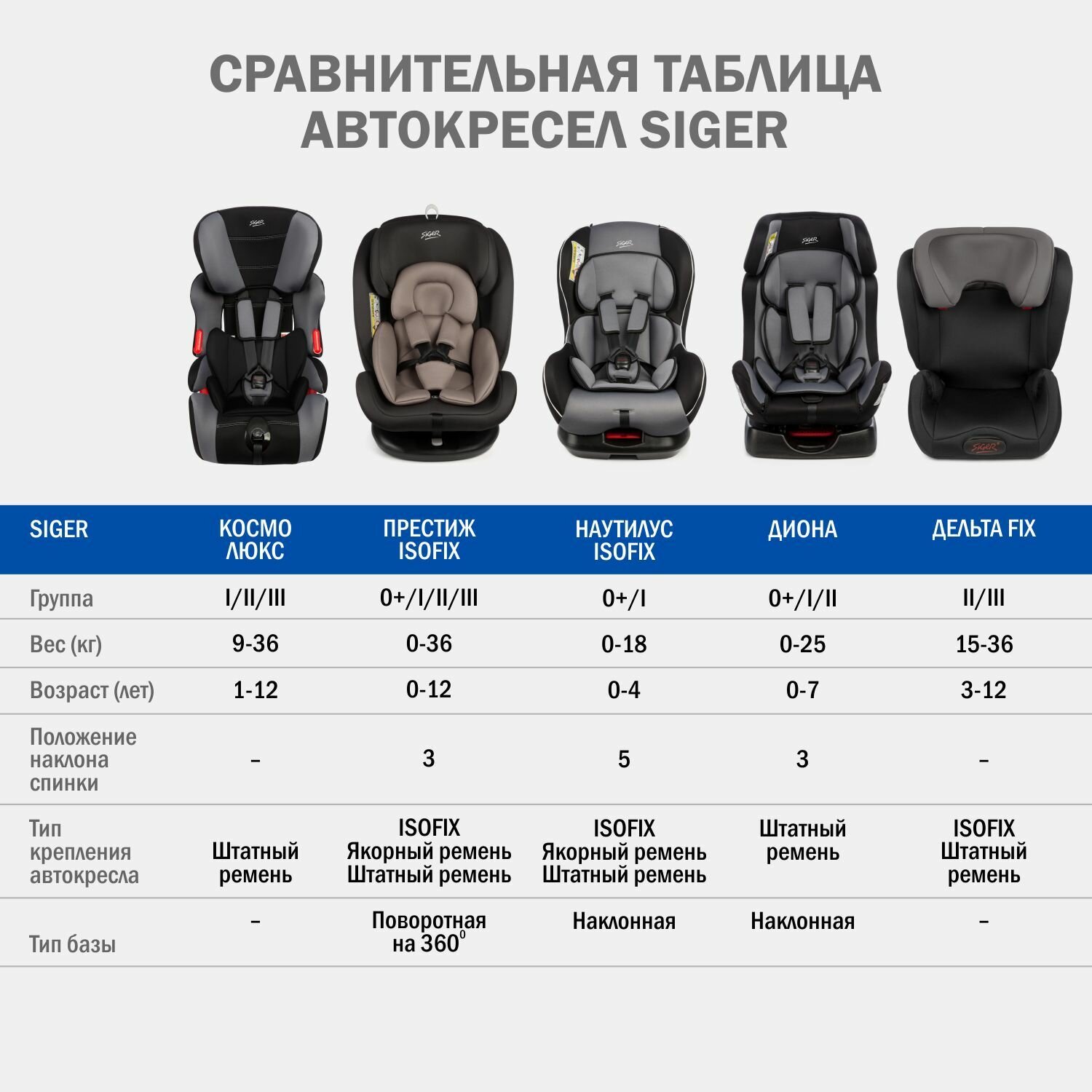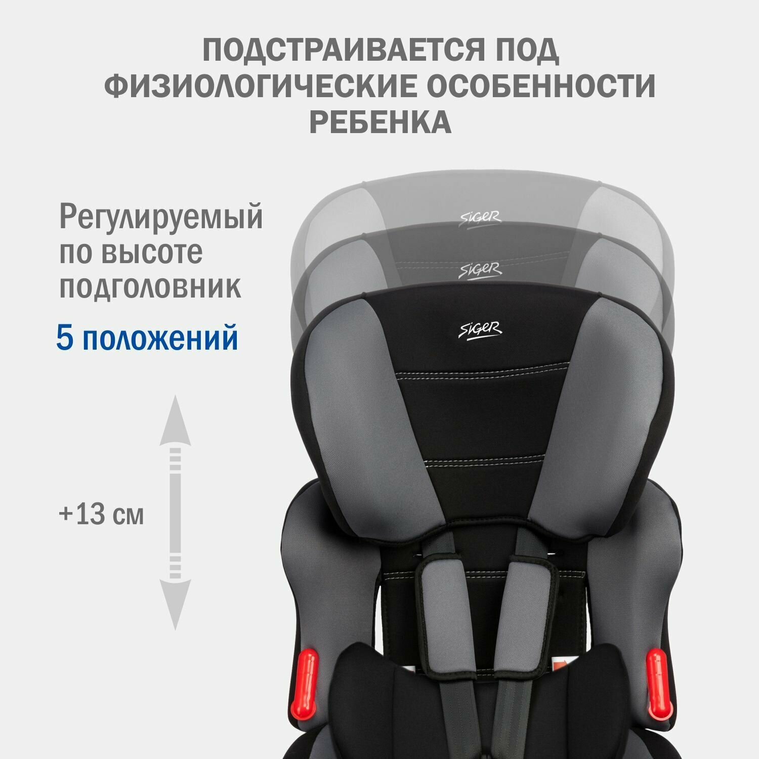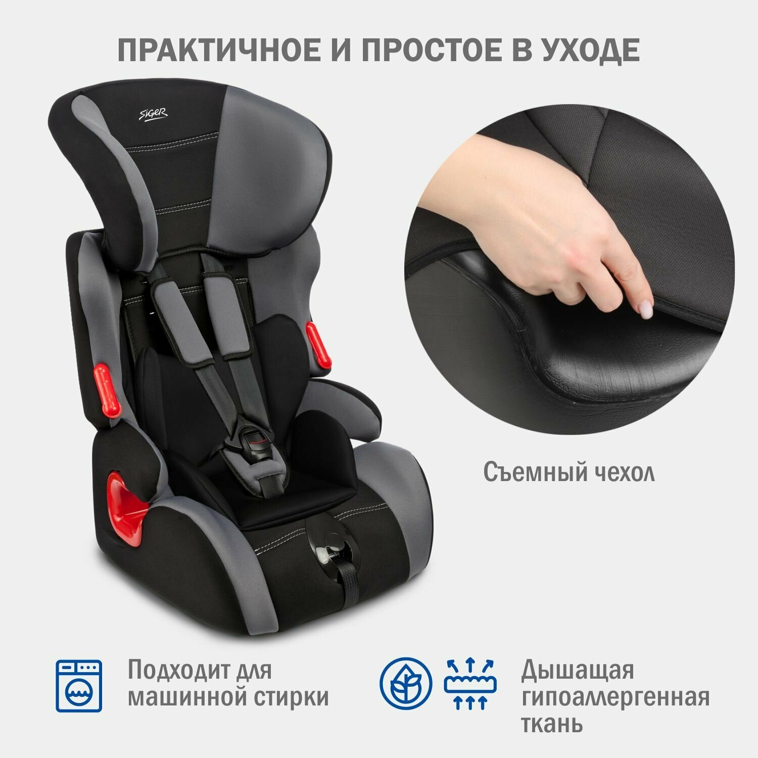 Автокресло Siger космо Lux, гр. 1+2+3 (9-36кг), серый