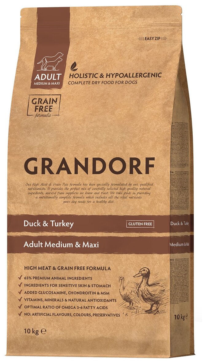 GRANDORF DOG Duck&Turkey MED&MAXI (утка с индейкой для собак средних и крупных пород) (10 кг)