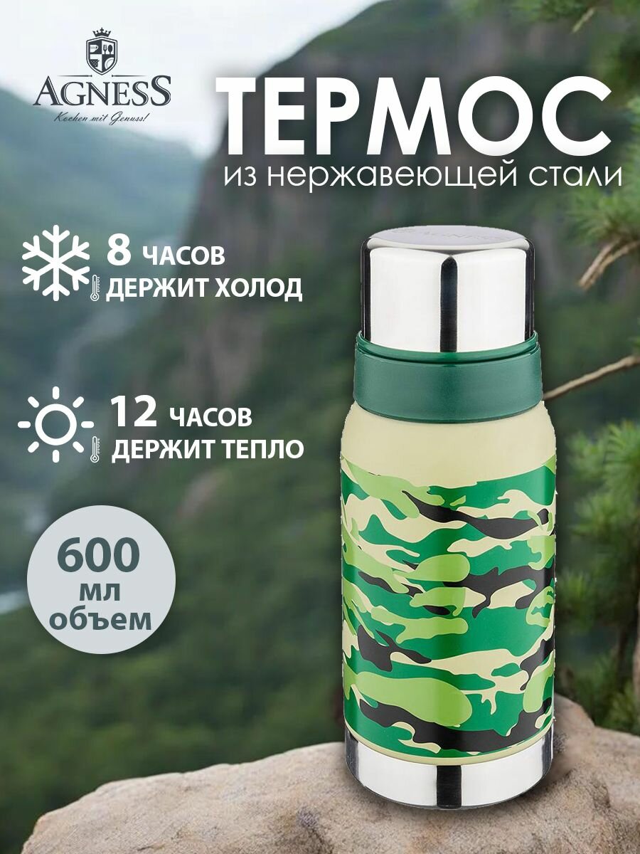 Термос Agness с узким горлом , колба нержавеющая сталь, с двумя крышками-чашками, 600 мл (910-100)