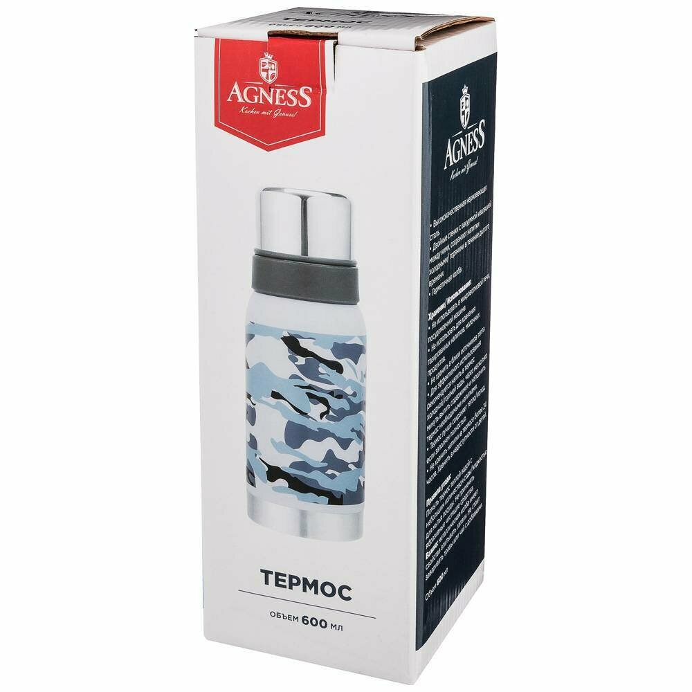 Купить Термос AGNESS С узким горлом И 2-МЯ крышками-чашками, 600МЛ, колба НЖС