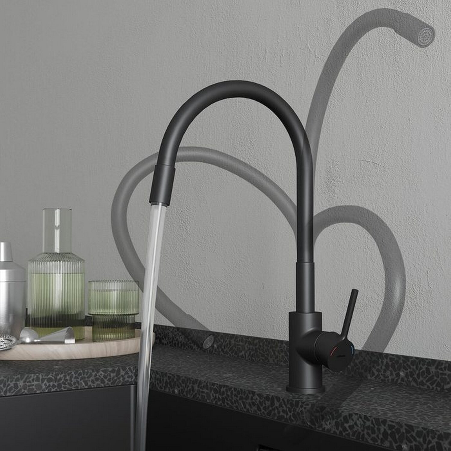 Смеситель для кухни Milardo Meal черный с гибким изливом однорычажный (M01BL0FM05)