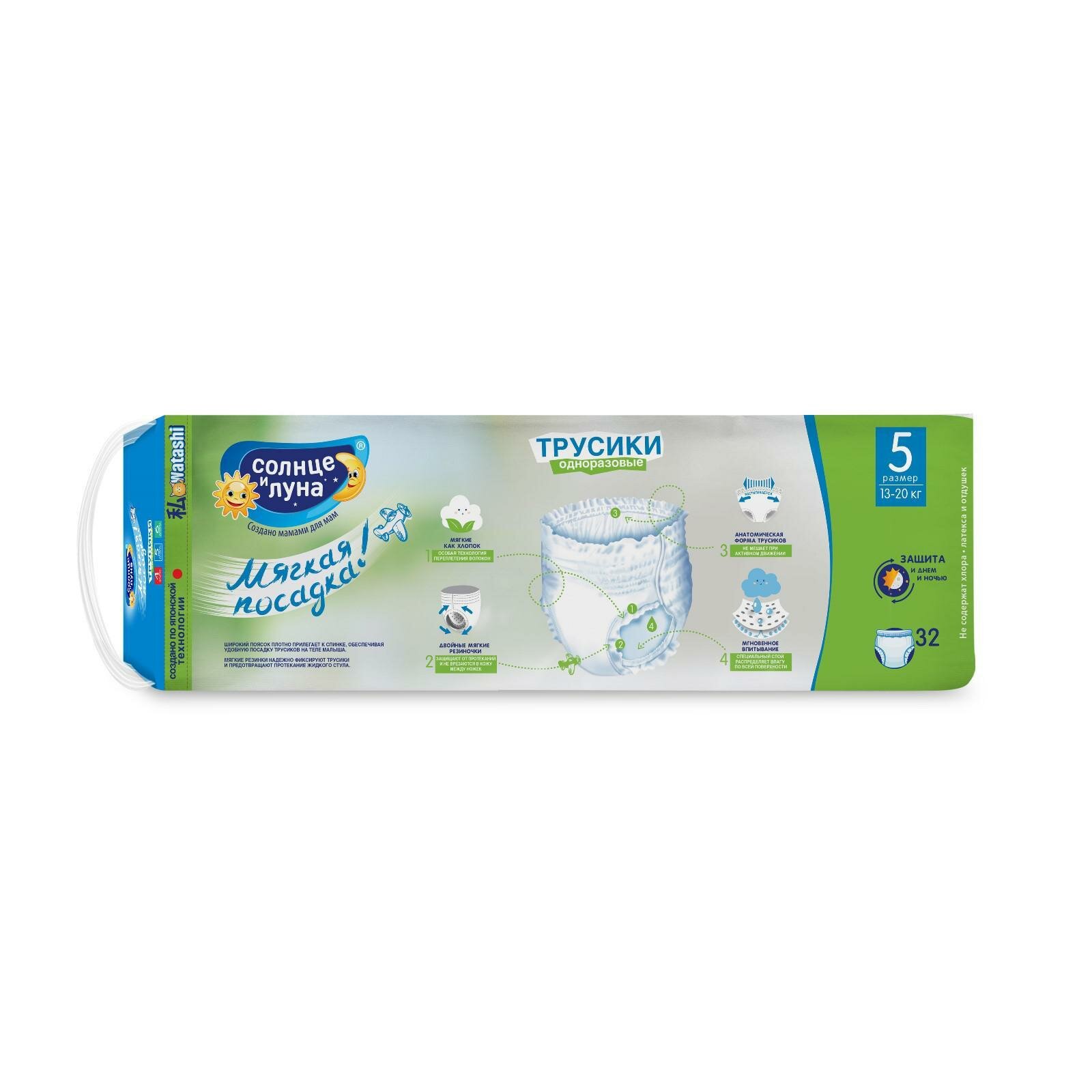 Трусики солнце и луна мягкая забота 32 шт 13-20 кг 5/xl интересное: