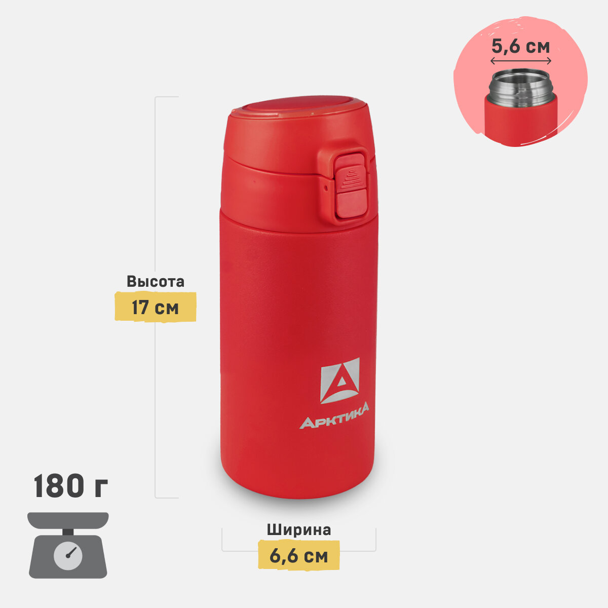 Термокружка для чая и кофе Арктика 705-500 красный 0,5 литров термос для напитков с кнопкой-фиксатором