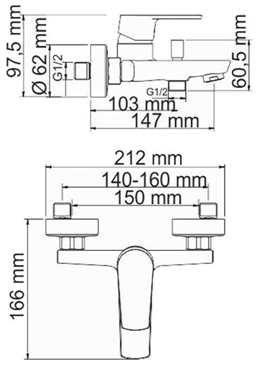 Смеситель Wasserkraft Dill 6101 для ванны с душем /6101