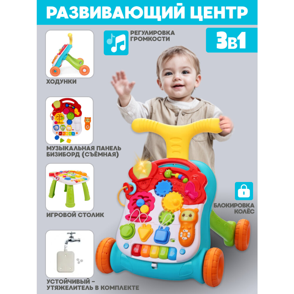 Развивающий бизиборд для малышей, детский игровой центр 3 в 1 стол , ходунки каталка для детей и игровая панель, 5218А/В интересное: