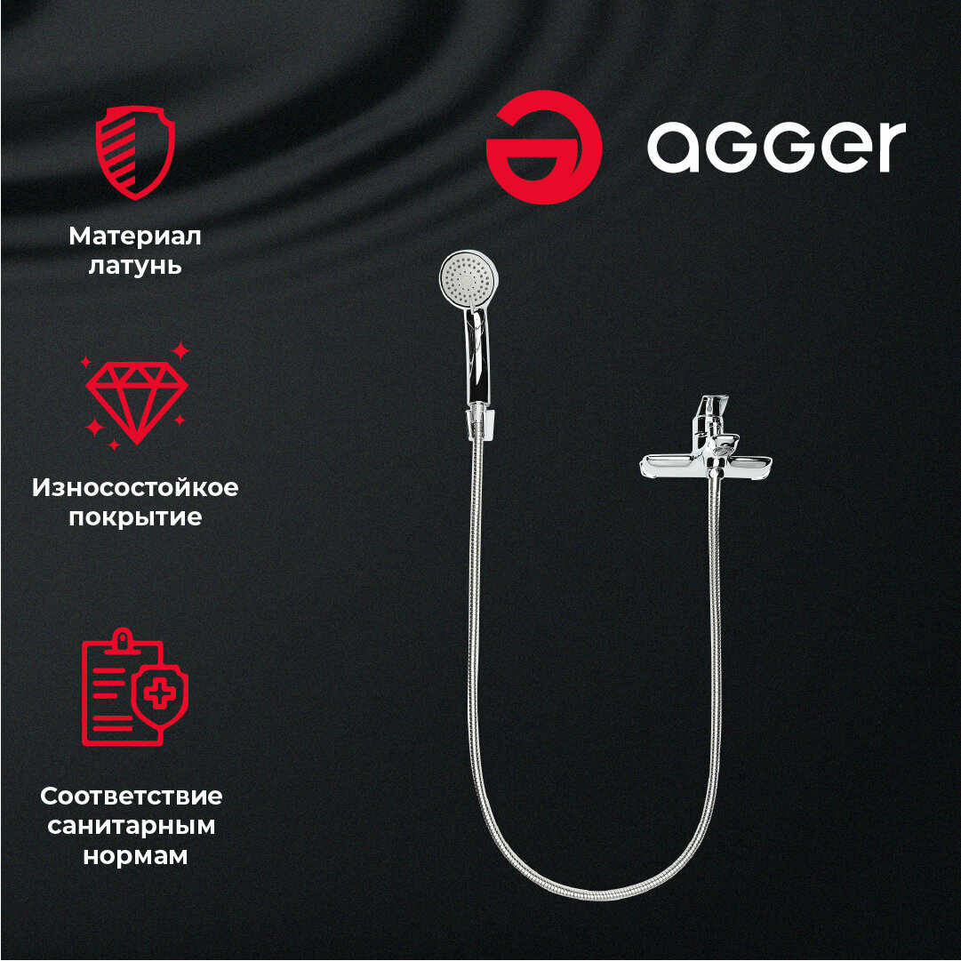 Смеситель для ванны и душа AGGER Clean A2410000 с душевым набором