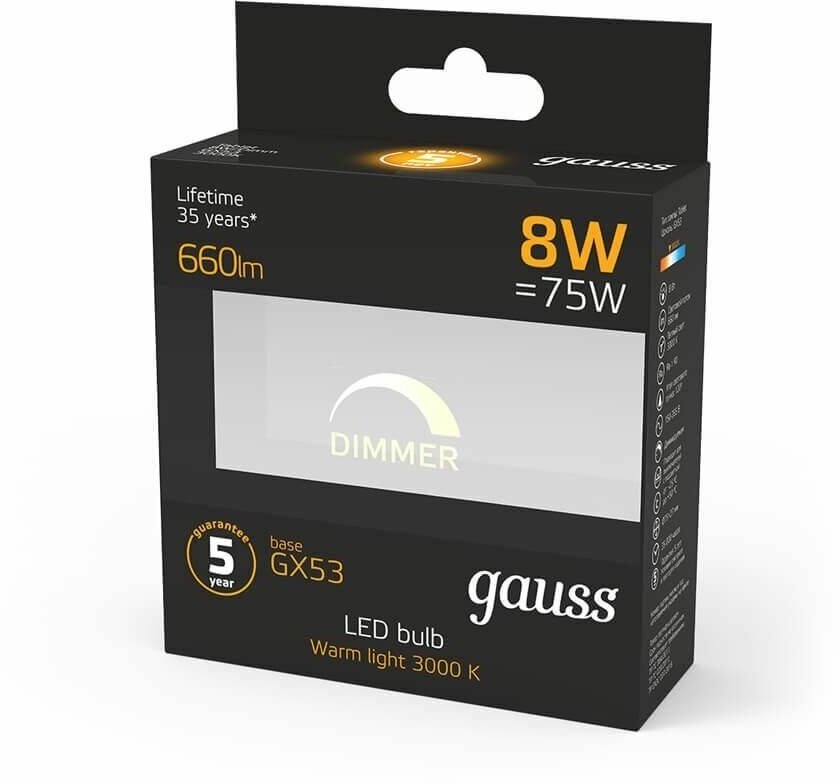Gauss Лампа GX53 8W 660lm 3000K диммируемая LED интересное: