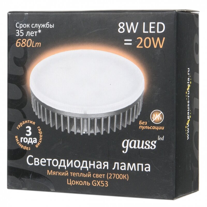 Ниже Вы можете прочитать отзывы на Лампа светодиодная GAUSS 108008108 GX53 8W 3000K tablet, ознакомится с подробными характеристиками, посмотреть интересные обзоры и фотографии на Лампа светодиодная GAUSS 108008108 GX53 8W 3000K tablet.