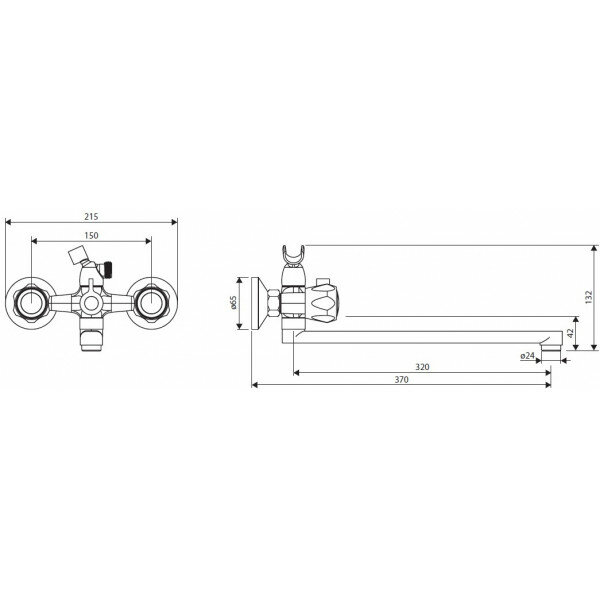 | Комплектация | смеситель - 1 шт. / эксцентрики 3/4" на 1/2" - 2 шт. / декоративные металлические чашки - 2 шт. / душевая лейка со шлангом (150 см) - 1 шт. |