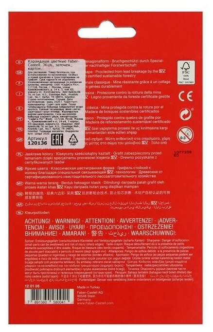 Карандаши цветные Faber-Castell, 36цв., заточен., картон, европодвес, 1 шт