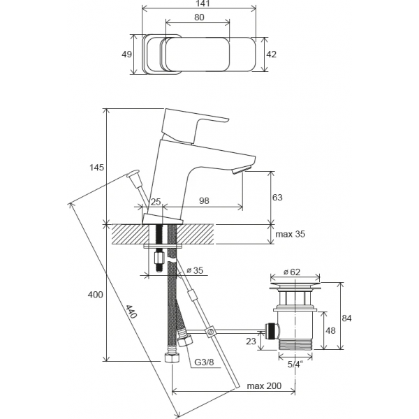 | Дополнительная информация | диаметр картриджа 35 мм; соединительные шланги: гибкий 400 мм, диаметр G3/8; открывание стока: с тросиком и сточным комплектом; расход (при 0,3 Мпа): 5 л/мин; гарантия на смесители: 5 лет |