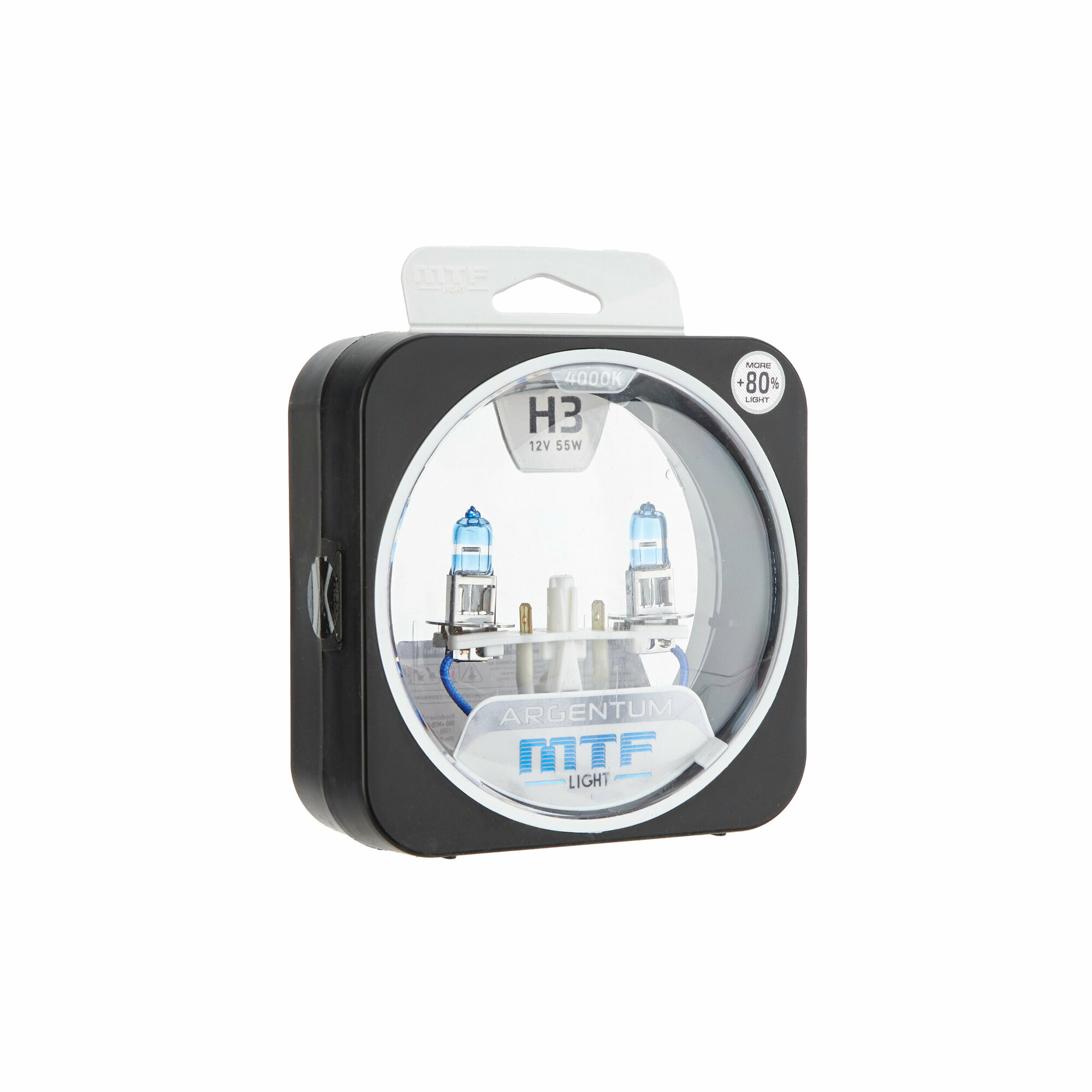Галогенные автолампы MTF Light серия ARGENTUM +80% H3, 12V, 55W, комплект 2 лампы
