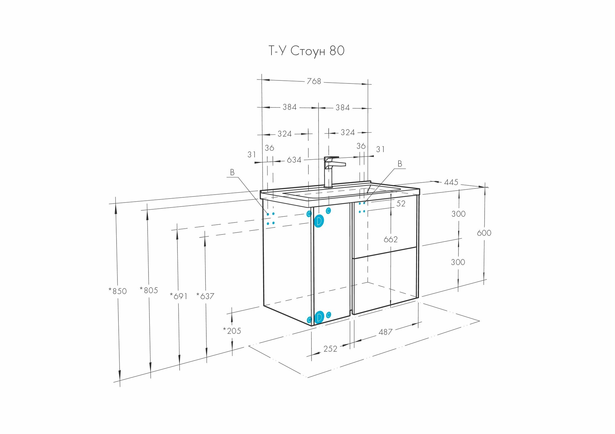 Тумба-умыв. "Стоун 80" 1A228201SX010