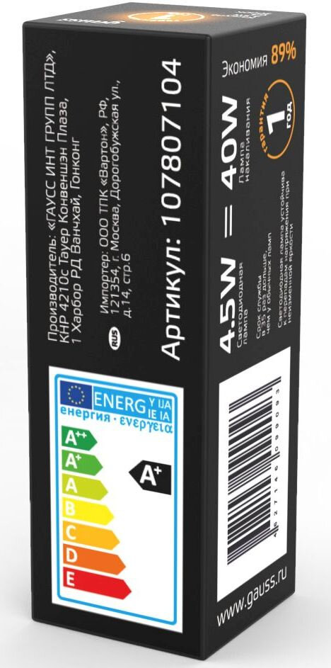 | Эквивалент лампы накаливания | 40 Вт |