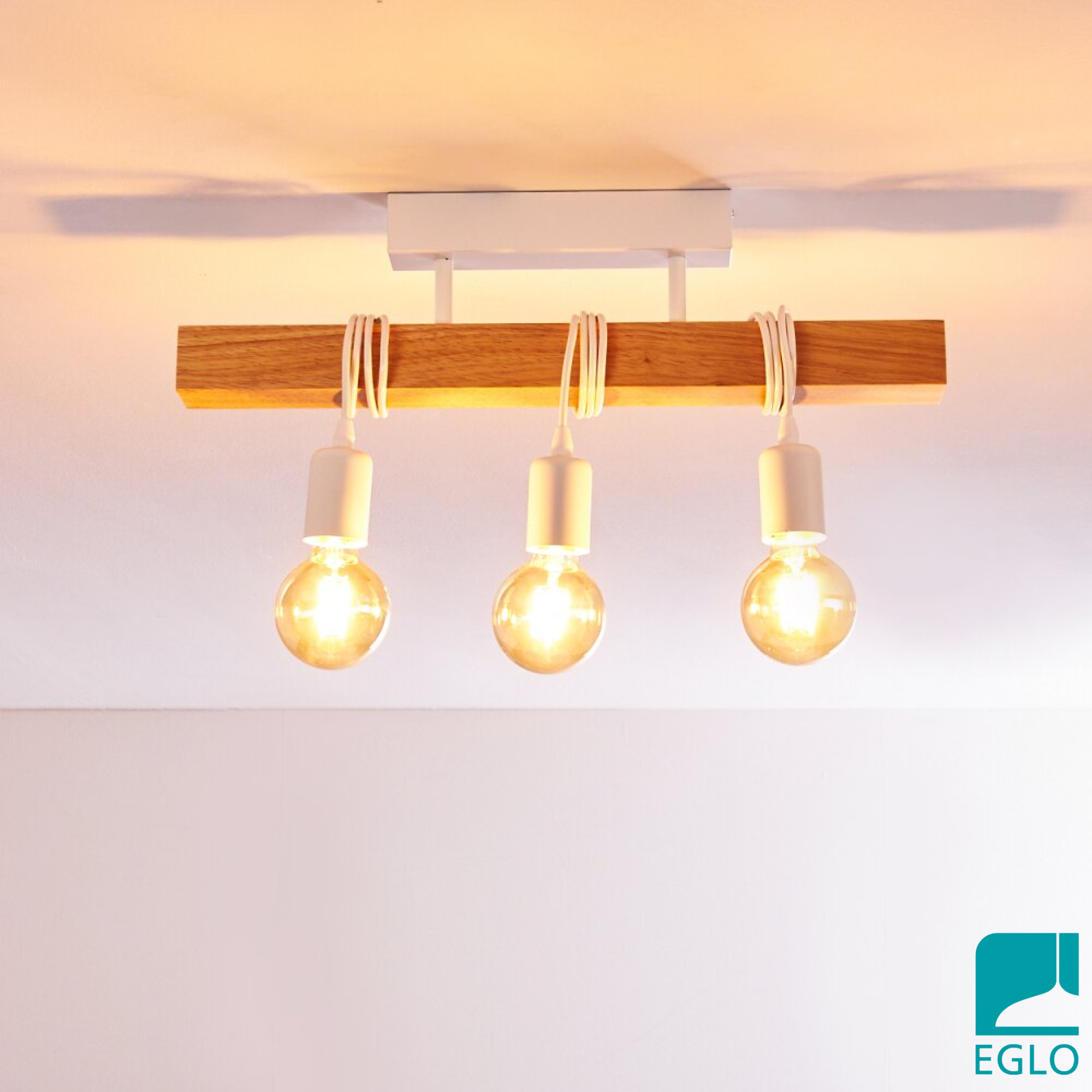 33166 Потолочный светильник TOWNSHEND, 3х60W (E27), L550, B105, H265, сталь, белый/дерево, коричневы