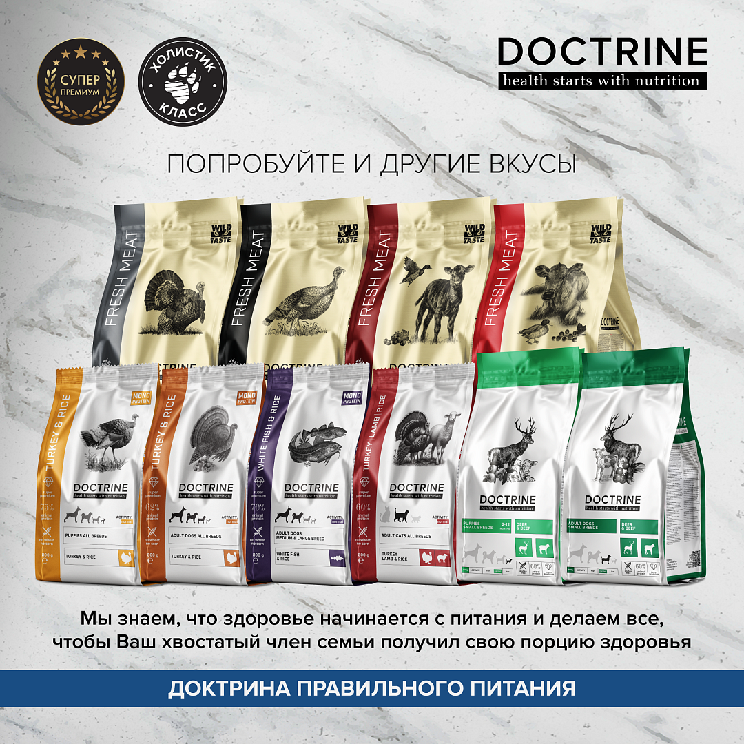 СохранитьDoctrine полнорационный сухой корм для взрослых собак всех пород с индейкой - 18 кг интересное: