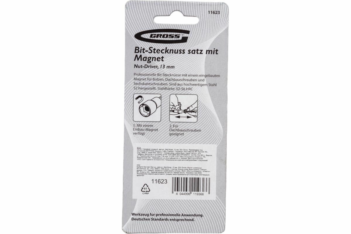 Бита с торцевой головкой, магнит. Nut-Driver, 13 мм, S2 Gross 11623