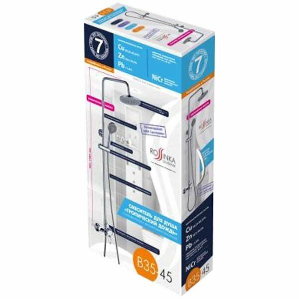 Купить Rossinka Смеситель B35-45 для душа с регулируемой высотой штанги и лейкой Тропический дождь B35-45