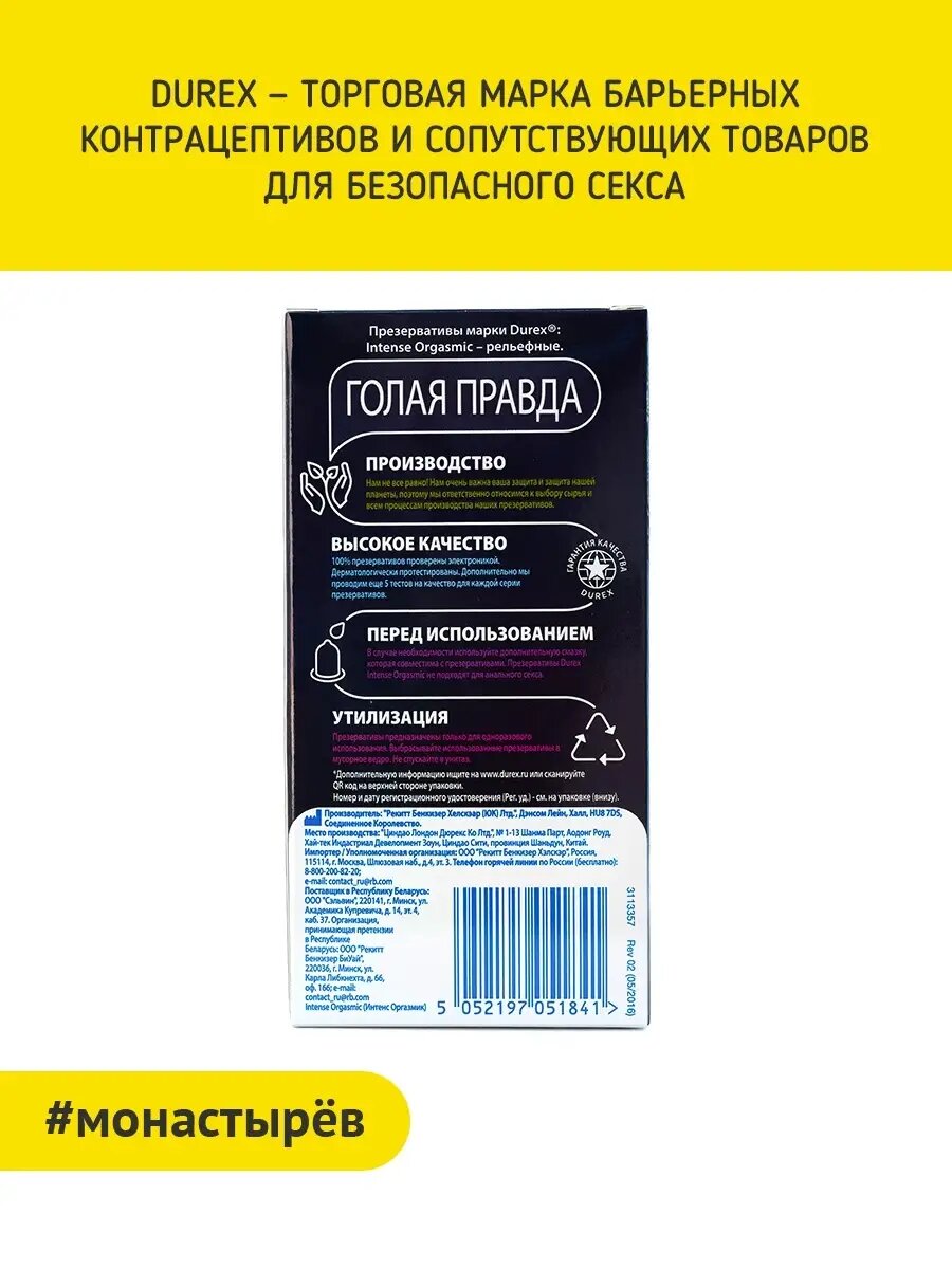 Ниже Вы можете прочитать отзывы на Презервативы Durex Intense Orgasmic, 12 шт., ознакомится с подробными характеристиками, посмотреть интересные обзоры и фотографии на Презервативы Durex Intense Orgasmic, 12 шт..