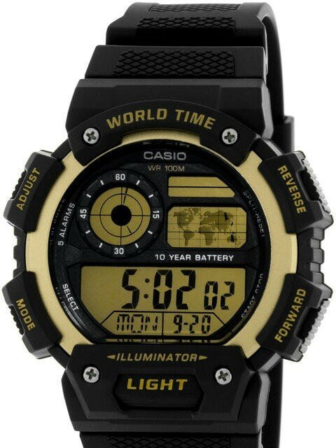 Купить Наручные часы CASIO Collection AE-1400WH-9A кварцевые, будильник, хронограф, секундомер, таймер обратного отсчета, водонепроницаемые, подсветка дисплея, золотой