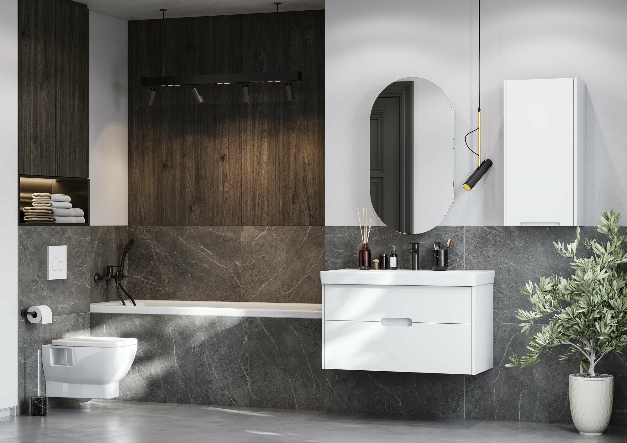 Тумба для комплекта AQUATON Оливия 90 грей/дуб ойстер