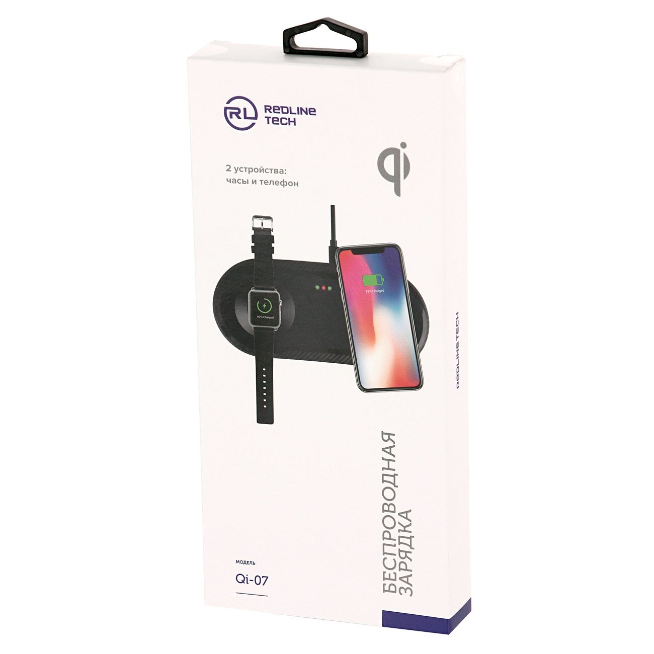 Беспроводная зарядка Red Line Qi-07 на два устройства (часы и телефон), черный