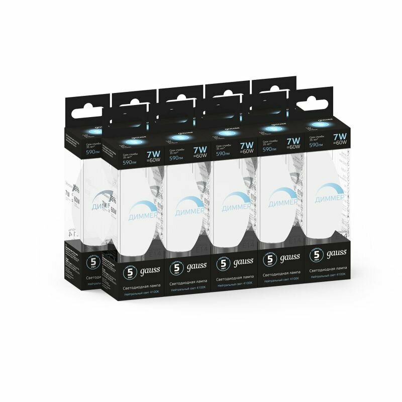 Лампа Gauss LED DIMM 103101207-D Candle E14 7W 4100К диммируемая NEW