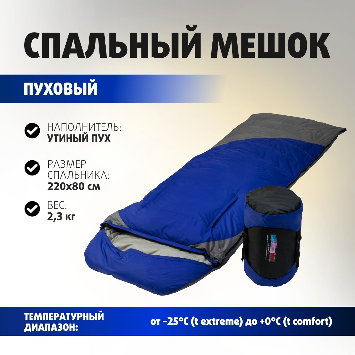 СохранитьСпальный мешок Premier пуховый, размер (190+30)х80см , t-25C, цвет синий PR, арт.PR-YJSD-32-B интересное: