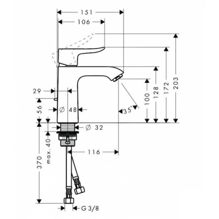 Смеситель Hansgrohe Metris 31080000 для умывальника с фиксированным изливом, донным клапаном