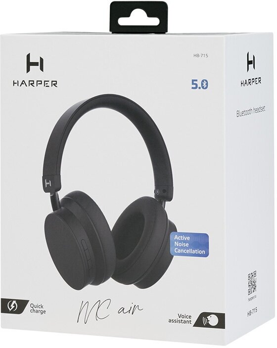 Беспроводные накладные BT наушники с ANC и Quick Charge HARPER HB-715 Черный