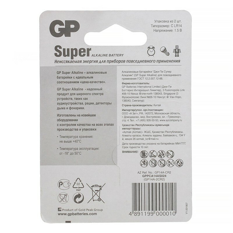 Купить GP Батарейки Super эконом C/LR14/14A Алкалиновая 2шт
