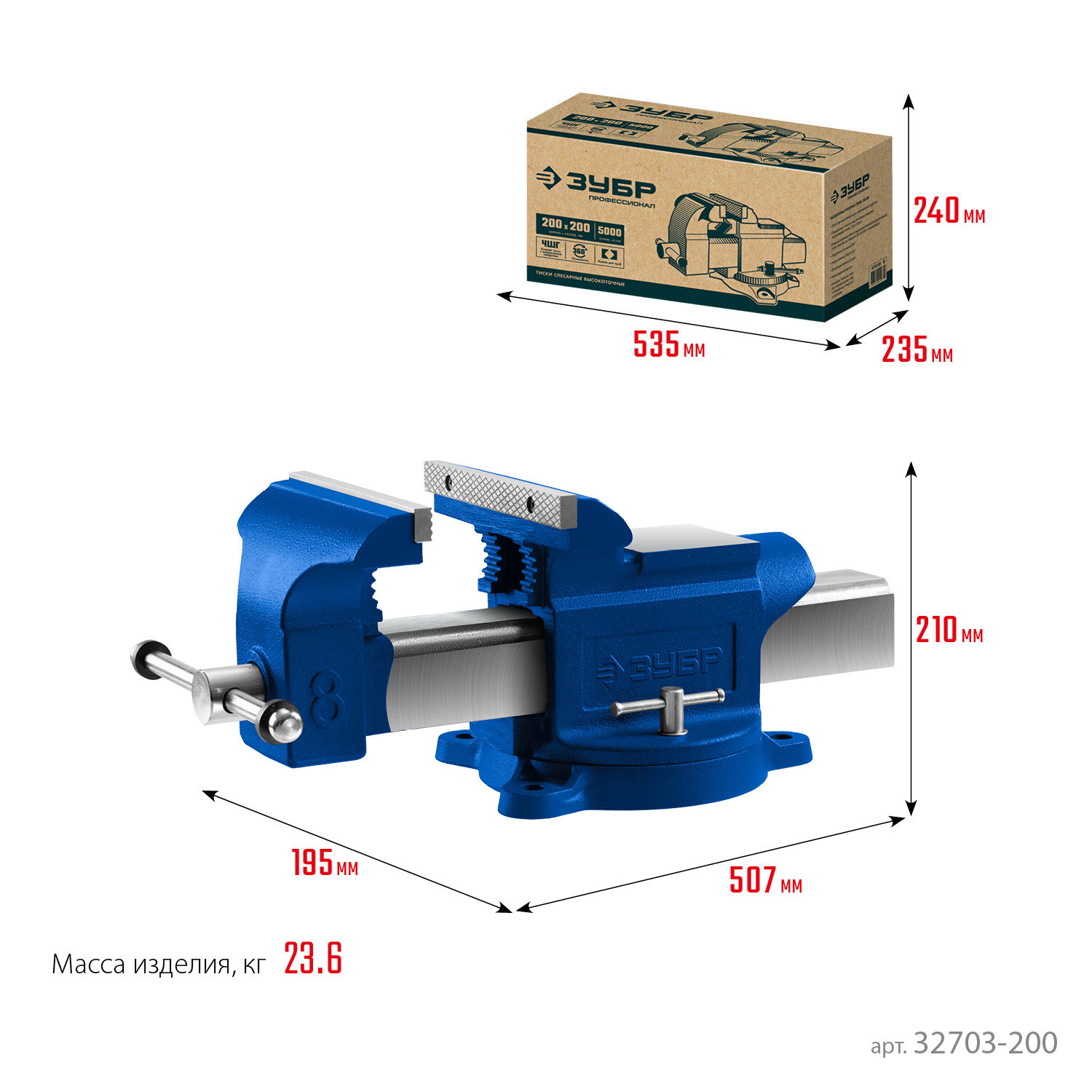 32703-200_z01 Зубр Профессионал, 200 мм, индустриальные слесарные тиски с регулировкой компенсации л .