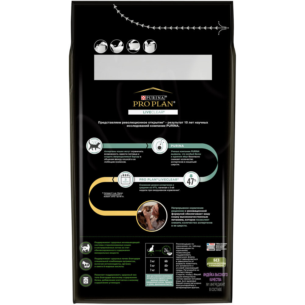 Сухой корм Pro Plan® LiveClear для стерилизованных кошек, снижает количество аллергенов в шерсти, с индейкой, пакет, 2,8 кг