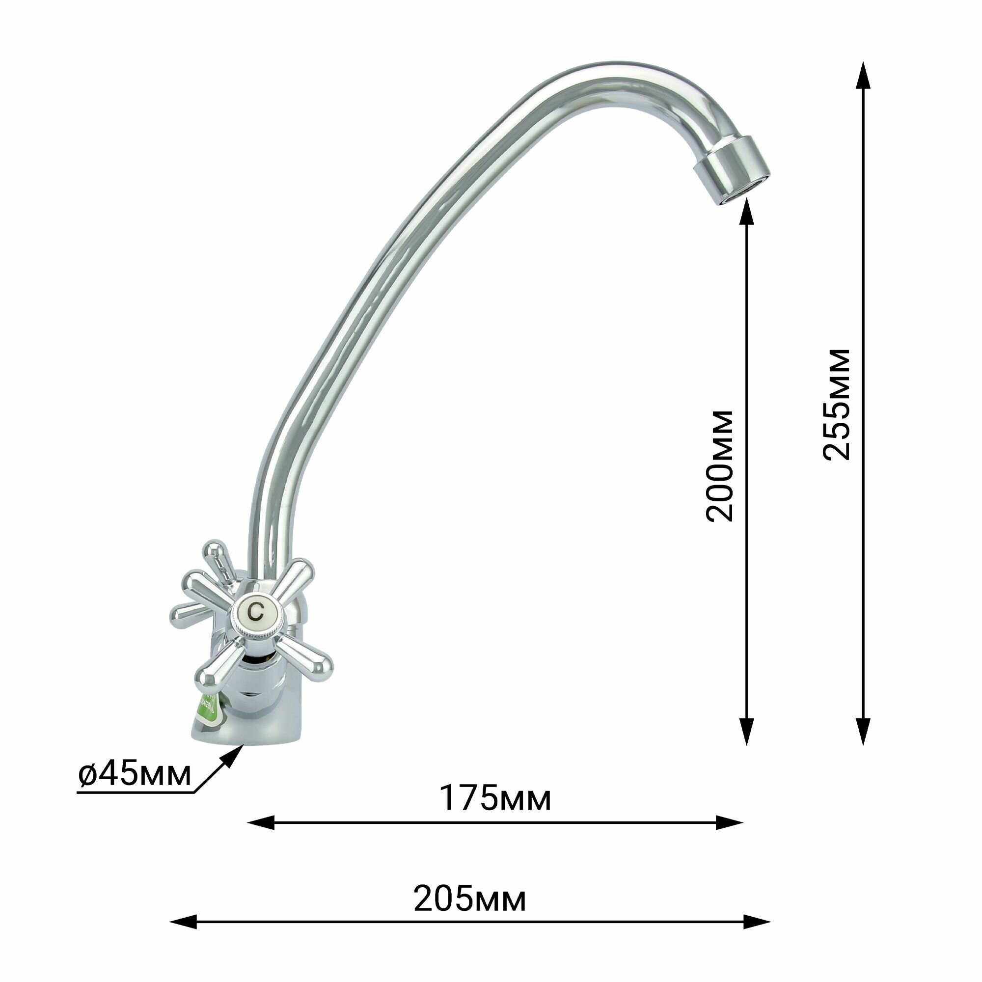 Смеситель для кухни Juguni поворотный излив длина 180 мм, кран-букса керамическая. Арт.: 0402.441