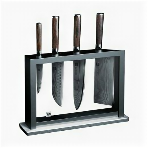 Набор кухонных ножей из дамасской стали (4 ножа + подставка) Xiaomi (Mi) HuoHou Damascus Kitchen Knife Set (HU0073), русская версия!!!, чёрный