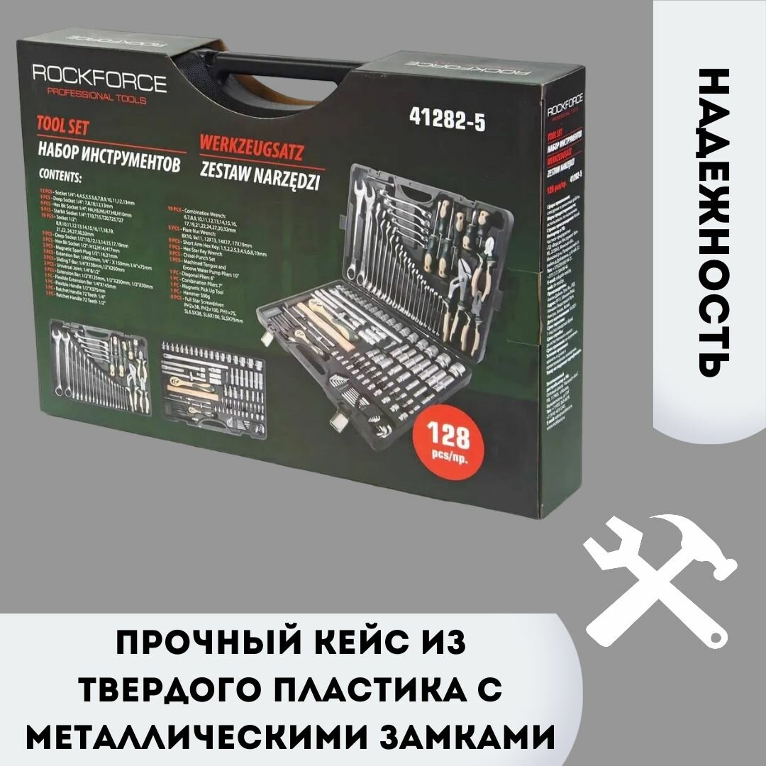 Набор инструментов RF-41282-5: 1/2"&1/4"DR с 6-гранными головками 128пр. ROCKFORCE