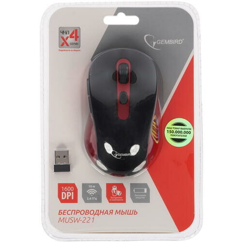 Беспроводная мышь Gembird MUSW-221, черный/красный