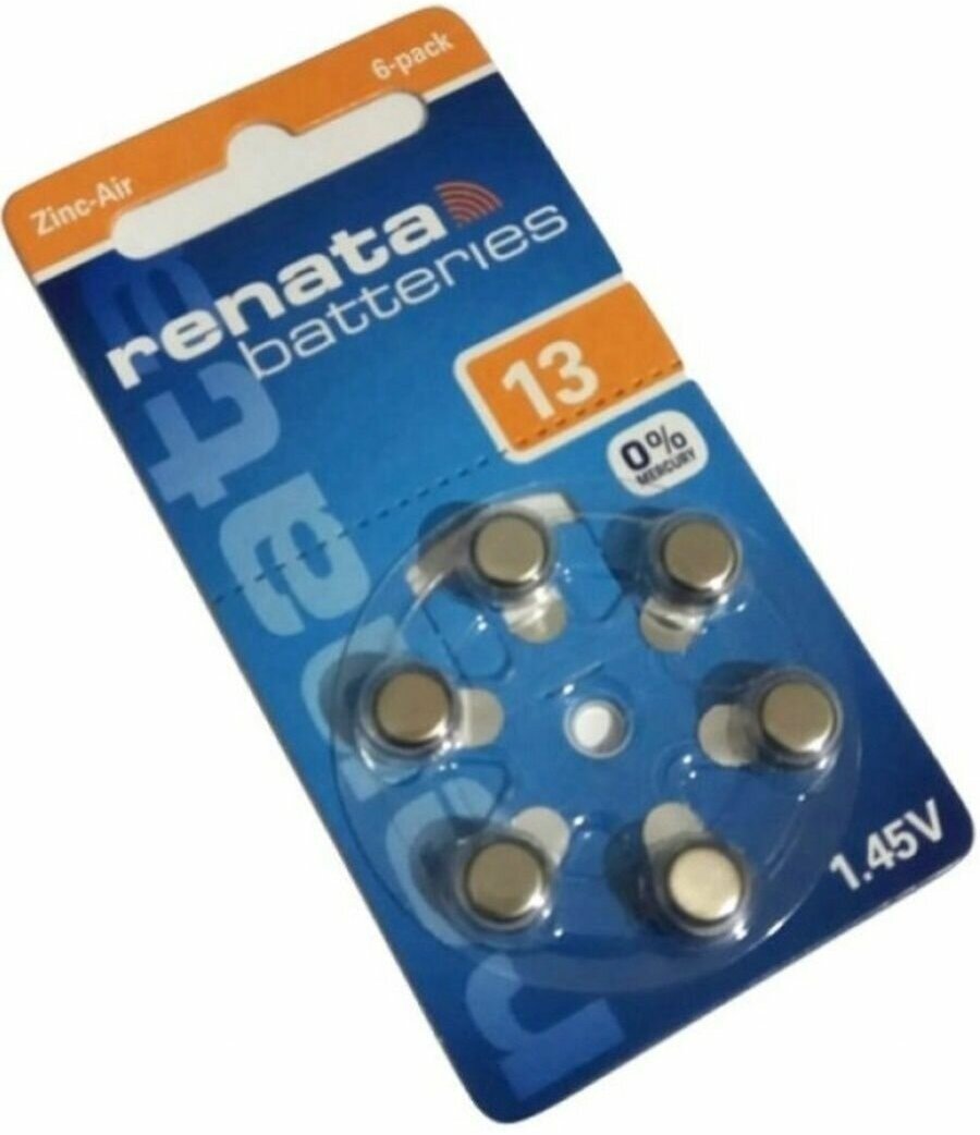 Купить Батарейки RENATA 13 1,45 В для слухового аппарата 6шт