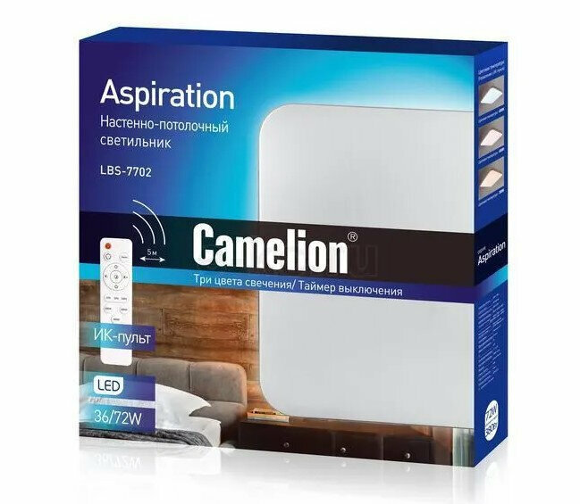Настенно-потолочный светильник LED Camelion LBS-7702 (Управл. 72 Вт, 3000-6000K, 4800Лм, пульт)