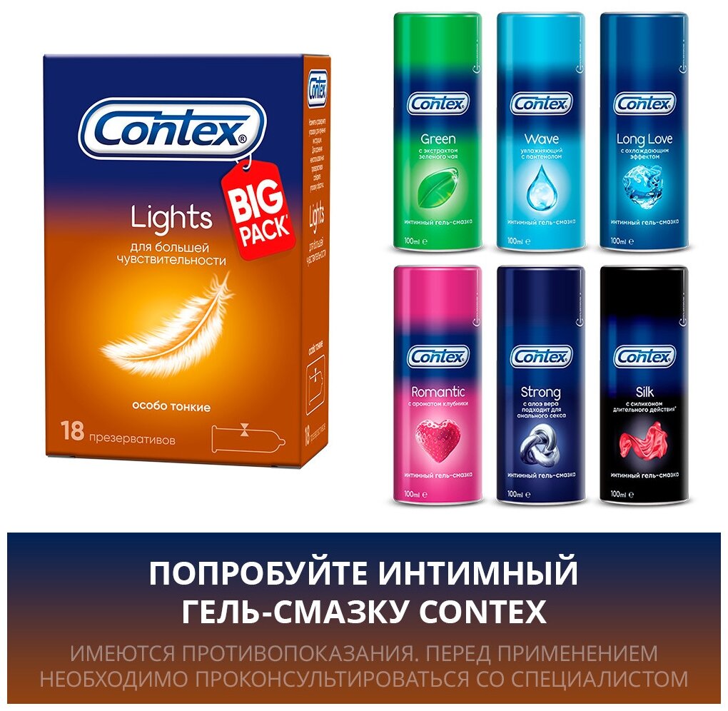 Презервативы Contex Lights, особо тонкие со смазкой, 18 шт