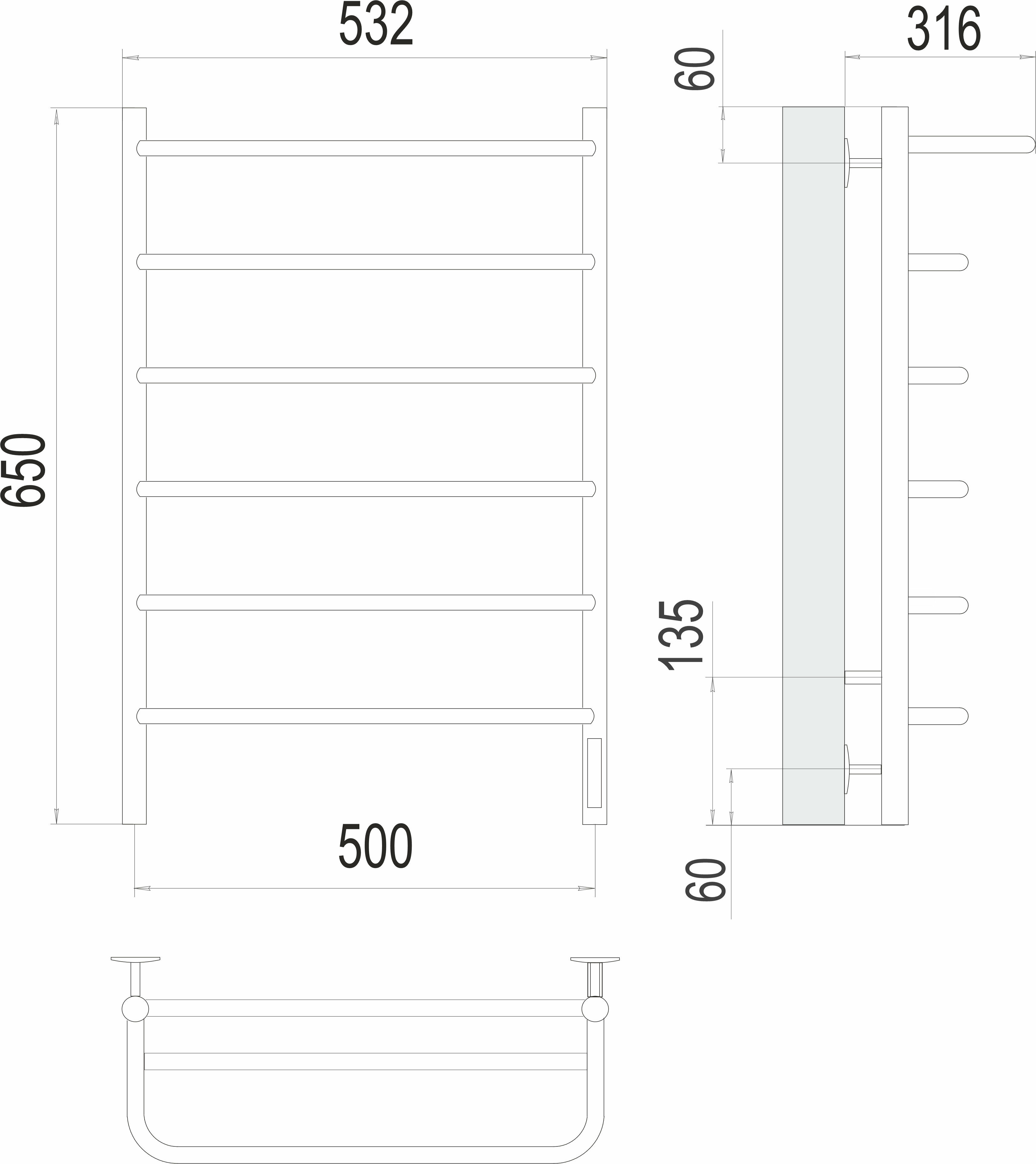 Полотенцесушитель электрический Terminus Полка П6 500*650