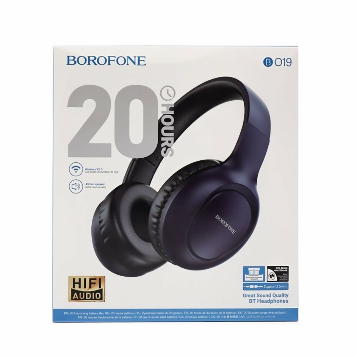 Стереонаушники Bluetooth Полноразмерные Borofone BO19 Musique BT5.3/200mAh/4ч/AUX синие